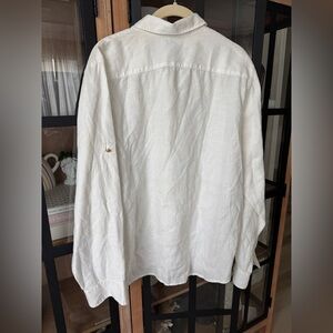 Vintage Ralph Lauren linen button down shirt embroidered monogram logo collar