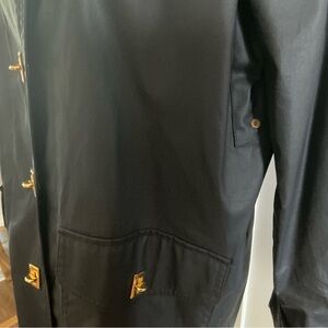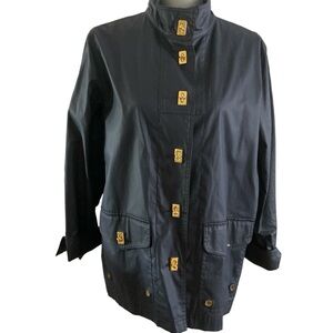 Vintage Ralph Lauren rain coat medium petite blue gold toggle front stand collar