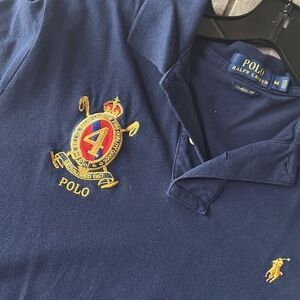 Vintage Ralph Lauren short sleeve polo crest patch, embroidered navy medium top