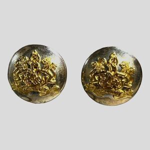 Vintage Ralph Lauren Signet Lion Crest Sterling Button Earring Gold Clip On RARE