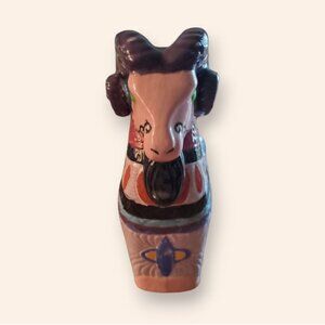 Vintage Ram Figurine Ceramic Ornate Etched Pastel Farm Animal Statue Retro