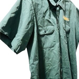 This vintage Ramco Big Ben button-down shirt is a must-have for any fashion-savvy man. The shirt features a solid green color with embroidered accents, a button-down collar, and short sleeves. It is made from high-quality materials and has a regular fit, making it comfortable and stylish for any occasion. The shirt is available in size XL and has a button closure. Perfect for casual outings or formal events, this shirt will surely make a statement. Add it to your wardrobe today!