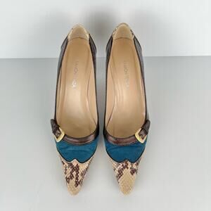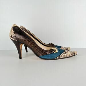Vintage Ramon Tenza Leather Heels Pointed Snake Toe & Buckle Western Womens 7