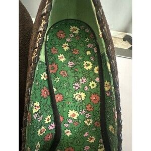 These wedge heels are perfect for any season, including winter, summer, fall, and spring. They are made with a breathable and comfortable fabric lining and insole material, ensuring your feet stay cool and comfortable all day long. The outsole material is synthetic, making them durable and long-lasting. These shoes are perfect for women who love vintage and classic styles, with a touch of a hippie and 90s theme. These shoes in remarkable condition accept for the two small marks on the heel, in the pictures listed.