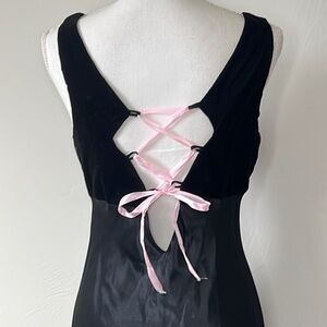 Ribbon corset back is interchangeable. I don’t know what originally came with it. It would be gorgeous to add your own details.