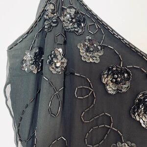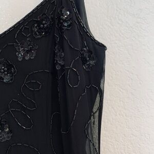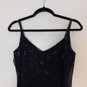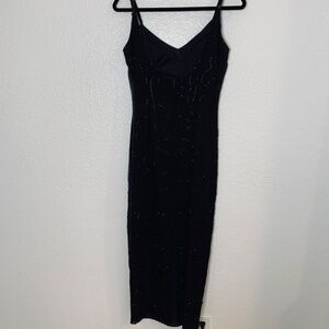 Vintage Rampage Silk Black Maxi Dress Size 7 Sequins Beads 90's Whimsy Goth Prom