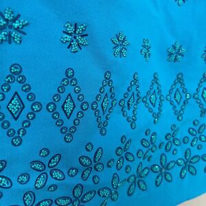 Vintage Rampage Slip Dress Women's Junior 7 Blue Floral Beaded Back Zip Y2K 2000's Hoco