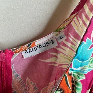 Vintage Rampage Sundress Womens Sz 5 Pink Floral Hawaiian Faux Wrap Y2K 2000’s