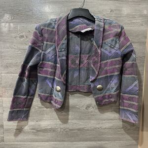 Vintage Rancha Deluxe Western Blazer Women's Medium Cropped Open Front Has some fading around shoulders and a faint stain by button that is very hard to see with the pattern. See all pictures before purchase