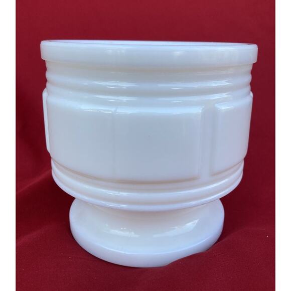 Vintage Randall Milk Glass Jardinere Block Pattern VASE Planter 4 3/8" x 4 5/8"