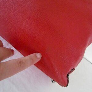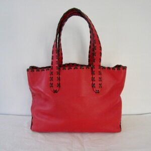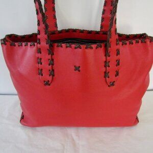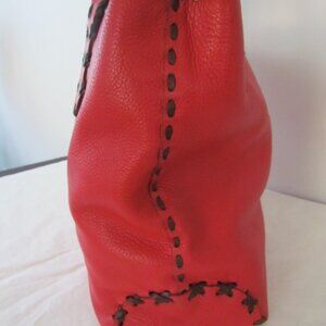 Vintage Randell Dodge Red Leather Tote Bag Y2K Cross Stitch LARGE Purse
