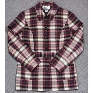 Vintage Randolph Duke The Look Y2K Wool Blend Jacket Blazer Plaid Pink Tan Sz 8