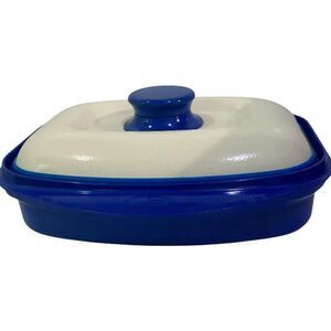 Vintage Range Mate Microwave Grill Steaks Blue White Rectangular Covered Dish