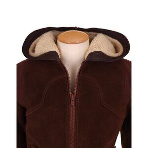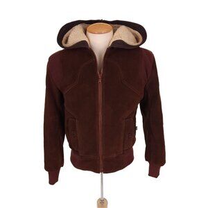Vintage Ransom Clothing Suede Leather Jacket Size XS Pile Lined Hooded Y2K