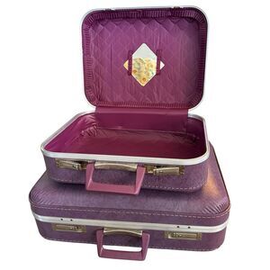 Vintage Rare 1960's J.C. Penny’s Purple Hardshell Vinyl Suitcases Set Of Two