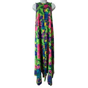 Vintage Rare 1960’s Psychedelic Vibrant Floral Hawaiian A-Line Maxi Dress Small