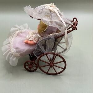 Vintage Rare 1976 Mattel 4 1/2" ROSEBUD Doll LAVENDER LACE ROSE With Stroller