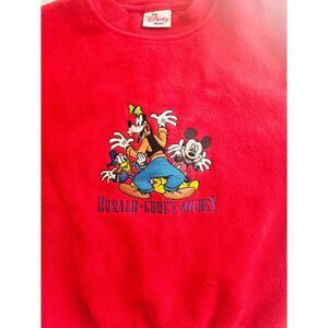 Vintage Rare 90s Disney Store Red Sweatshirt Goofy, Donald & Mickey Kids Size S