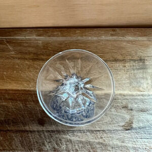 Add a touch of elegance to your drinkware collection with this vintage blue VMC Reims French Harlequin crystal wine glass. The diamond cut pattern and mid-century modern style make it a perfect addition to any occasion. This 15cm tall glass is made of high-quality crystal and is recommended to be hand washed only. The decorative feature and production style of cut glass add to its charm. This wine glass is from the 1950-1959 time period and is a part of the Harlequin product line. Toast to life with this exquisite glass.
