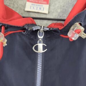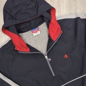 Vintage Rare Champion Windbreaker Quarter Zip Jacket Hooded Reflective Red Black Size XL