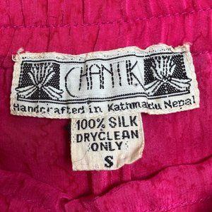 Vintage Rare Chantik Sz Small Women 100% Silk Bright Pink Pants Nepal Trousers