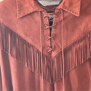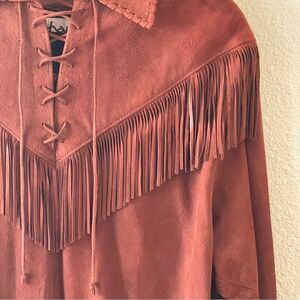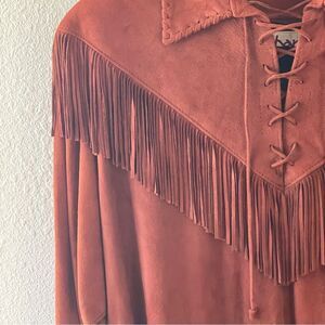 Vintage Rare Char Suede Leather Fringed Jacket Top With Shoulder Pads Brown Med