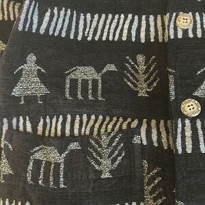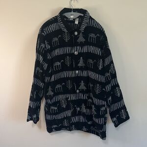Vintage Rare Chicos Design Black/Gray Primitive Print Button Front Jacket Shirt