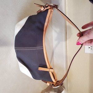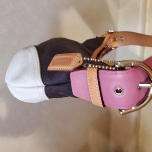 C220 10"X7" Coach Black Twill & Leather Hobo Bag