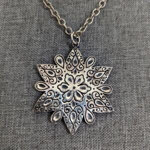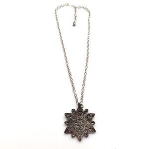 Vintage Rare Coro Signed Silver Tone Ornate Star Floral Pendant Chain Necklace