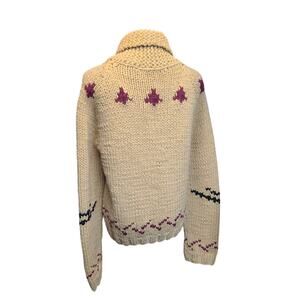 Vintage Rare Cowichan-style Handknit Raindeer Motif Thick Zip Sweater