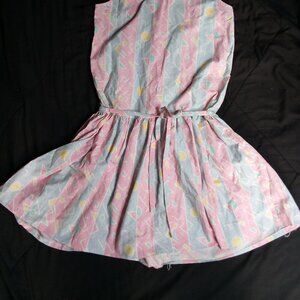 Vintage Rare Editions Abstract Geometric Stripes Pastel Midi Dress Sleeveless