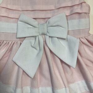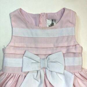 Vintage Rare Editions Pink White Ruffle Stripes Bow Sleeveless Formal Dress