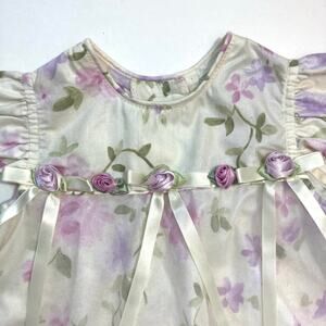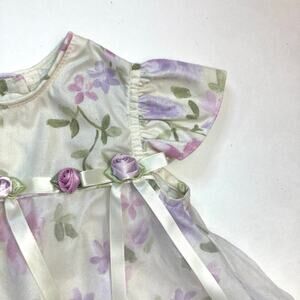 Vintage Rare Editions White Floral Sheer Ribbon Rosettes Flutter Formal Dress