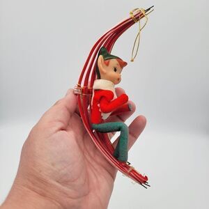 Charming vintage elf ornament. Perfect for holiday decor. Adds a festive touch to your tree.