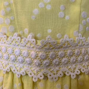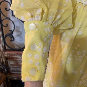 Gorgeous (No label/tag) vintage bright flocked yellow/ white max dress long sheer sleeves fully lined zipper closure, gorgeous white lace belt 2 hooks closure smoke/pet free home