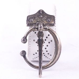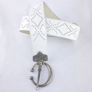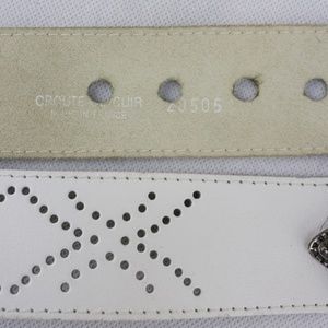 Vintage Rare French Belt Womens Small White Laser Cut Croute de Cuir