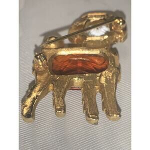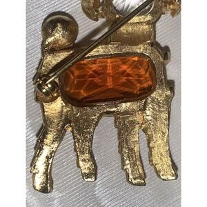 Add a touch of vintage elegance to your jewelry collection with this rare and unique EISENBERG POODLE Dog Brooch. This brooch is signed and in EVC . The gold tone finish is in wonderful con. & No stones missing. The clasp & pin are in excellent con. as well . The center rectangular stone is a rich Caramel Topaz color and set with 4 substantial prongs . The head stone is a crisp clean faux “diamond “. It’s measures appropriately 1.75 inch by 1in wide . It’s been well cared for in a collection of Eisenberg jewerly . This is really a treasure . This would make a great fit for someone who collects Eisenberg or a Poodle /Dog lover 🐩Please let me know if you have any questions or need more pics. Your Brooch will carefully package and in a proper jewerly box .
