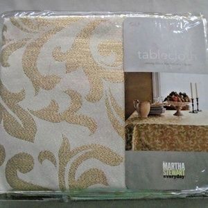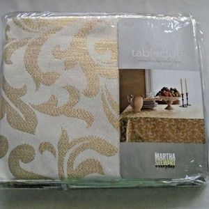 True Vintage Beautifully Designed Rare Martha Stewart Golden Luster Metallic Christmas Oblong Tablecloth Size 52"X70". Will be great for Thanksgiving, Christmas, Special Romantic Dinners and more. It is a must have. New in pack. Hard to find.