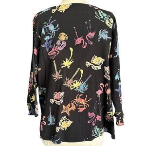 Vintage Rare HTF 90s Under The Sea Ocean Beach Flamingo Print Flutter Sleeve Art Top Size L 100% Cotton