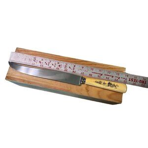 This Vintage Rare Henley & Co Stainless Carving Set, crafted in Germany during the 1940's, boasts an antique charm and superior quality. With its timeless elegance, it adds a touch of class to any dining occasion.