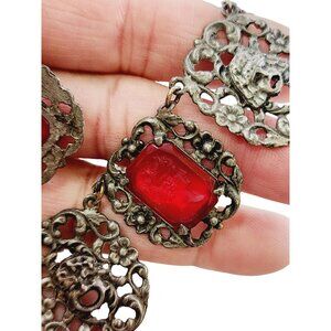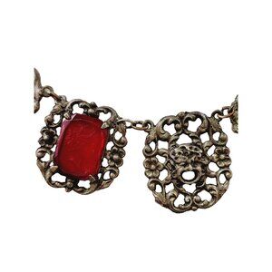 Details: Very unique. It features 4 Intaglio lady faces & 3 different faces in heavily detailed metal sections. This is an old one, has thumbless clasp.