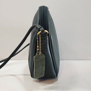 This is a hard to find, vintage Coach Minetta Zip (4123) leather crossbody purse. The color is Ivy which seems to be a rare color in this style. It is a small, ultra lightweight bag, not the normal heavy leather that you are used to from Coach. It has a thin tubular leather strap, top zippered opening, and was only made for two years, 1992 and 1993 in the US factory. Bag has the original hang tag (see pic) and is stamped 0879-235. Approximate measurements 7.5” x 6.5” x 2.25”, strap has a 22" drop. In great shape, I don't think it was actually used. Wear points on the corners from storing (see pics) and natural striations in the leather (see last two pictures).