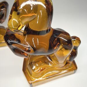 Vintage Rare L.E. Smith Amber Satin Glass Rearing Horse Bookends Pair Of 2 MCM