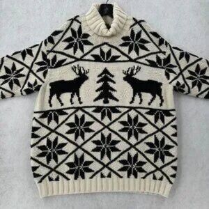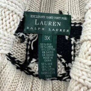 Vintage Rare Lauren Ralph Lauren Hand Knit Christmas Sweater 3X Reindeer Snow