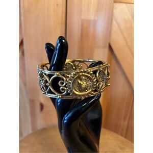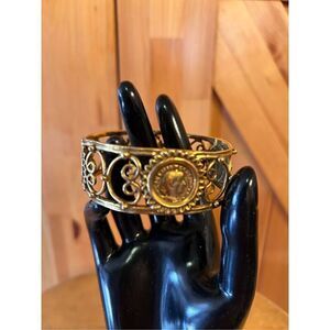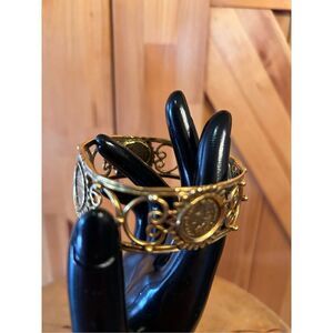 Vintage Rare MMA KHM Metropolitan Museum of Art Gold Plated Gilded Openwork Filigree Roman Coin Bangle Bracelet Classic Signed 1993 2.6”x2.6” 1.7oz (4721)