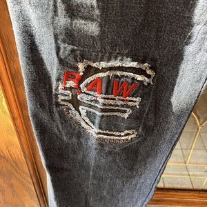 Dry Clean only due to small leather patch at button fly and special embroidered logo "Raw" on leg
