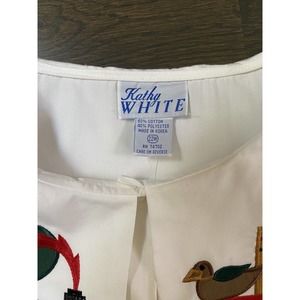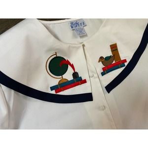 VINTAGE ~RARE~ NWT KATHY WHITE BIG COLLAR EMBROIDERED TOP BLOUSE