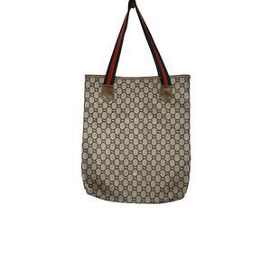 Vintage Gucci Plus GG Monogram Tote Bag Web Strap Brown Canvas Leather Italy