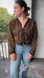 Pinky. Size large. Cropped jacket. Shoulder pads. 3 ties at the front.