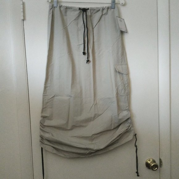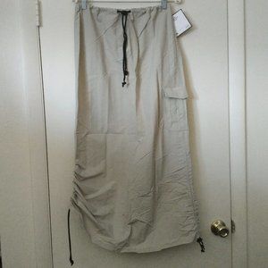Women's True Vintage Very Rare Beautifully Designed Tan Nylon Pocket Drawstring Adjustable Waist And Lower Sides Summer Fashion Fun Comfy Sexy Skirt Size M. Will be great for the summer and beyond. Very hard to find, will make a great gift.